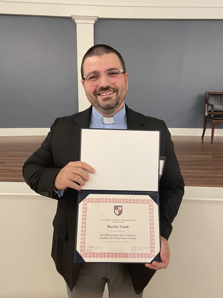Bartolo Natoli, Ph.D., Professor of Classics, Randolph-Macon College and Helena von Rueden, Ph.D., Elliott Associate Professor of Fine Arts, Hampden-Sydney College received the 2025 Libby and Hiter Harris Awards for Excellence in Undergraduate Teaching.